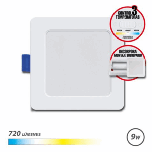 Faretto quadrato Elbat 9W – 720Lm – Selettore a 3 temperature + Montaggio a parete – Bianco