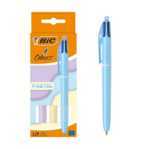 Bic 4 Colours Pastel Confezione da 3 penne a sfera a scatto – Punta media da 1,0 mm – Inchiostro a base di olio – Corpo pastello – 4 colori