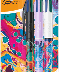 Bic 4 Colours Decors Hydro Confezione da 3 penne a sfera a scatto – Punta media da 1,0 mm – Inchiostro a base di olio – 4 colori