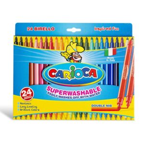 Carioca Birello Confezione da 12 Pennarelli – Doppia Punta Fine e Media – Inchiostro Atossico Super Lavabile – Lavabili da Pelle e Tessuti con Acqua e senza Sapone – Vari Colori