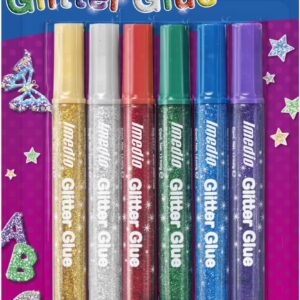 Imedio Colla Glitter Originale Confezione da 6 Tubi di Colla Glitter da 10ml – Per Diversi Materiali – Tubo Extra Morbido – Ugello di Precisione – Senza Solventi – Colori Assortiti