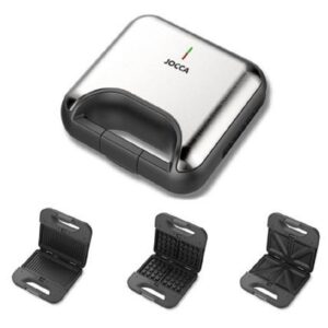 Jocca Waffle Maker 3 in 1 – 3 piastre antiaderenti intercambiabili per panini, waffle e grill