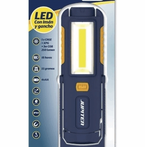 Lampada da lavoro Jupiter LED+COB 250lm – Con magnete e gancio – Resistenza IP44 – Funziona con 4 batterie AA (non incluse) – Colore blu