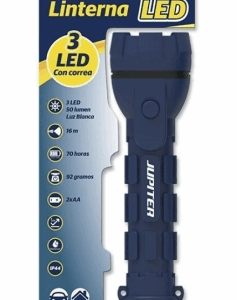Torcia elettrica Jupiter White Light 3 LED 50lm – Corpo in gomma – Resistenza IP44 – Funziona con 2 batterie AA (non incluse) – Colore blu
