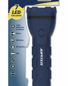 Torcia elettrica Jupiter White Light 7 LED 100lm – Corpo in gomma – Resistenza IP44 – Funziona con 2 batterie D R20 (non incluse) – Colore blu