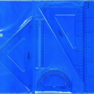Maped Pack di Strumenti da Disegno – Righello da 30 cm, Righello da 15 cm, Squadra, Squadra e Goniometro – Custodia con Chiusura in Colori Assortiti – Trasparente