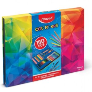 Maped Color’Peps Confezione da 150 Pezzi per colorare con pennarelli, matite colorate forti, Infinity, Aqua, Pastel e Duo World, pastelli a cera, pennarello glitterato, matita di grafite, pennello, gomma e temperino