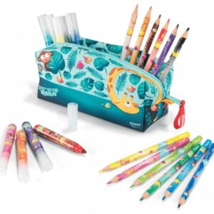 Maped Jungle Fever Babies Custodia in tessuto con 12 matite colorate Jumbo Jungle Fever (dai 2 anni in su) e 12 pennarelli colorati Jumbo Jungle Fever (da 1 anno in su)