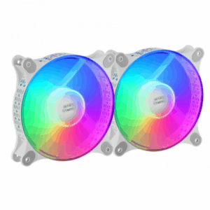 Kit ventola Mars Gaming MF-DUO – Illuminazione a 360º FRGB RAINBOW – Ultra silenzioso – Connettività 3PIN + 4PIN – 2 unità – Colore bianco