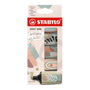 Stabilo Boss Mini Naturevibes Confezione da 3 pennarelli fluorescenti – Tratto tra 2 e 5 mm – Inchiostro a base d’acqua – Anti-seccatura – Colori verde fango, verde terra e beige