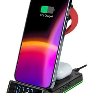 Thomson CL750IS Estacion de Carga por Induccion 4 en 1 – Reloj Despertador y Luz Nocturna – Compatible con Android – Color Negro