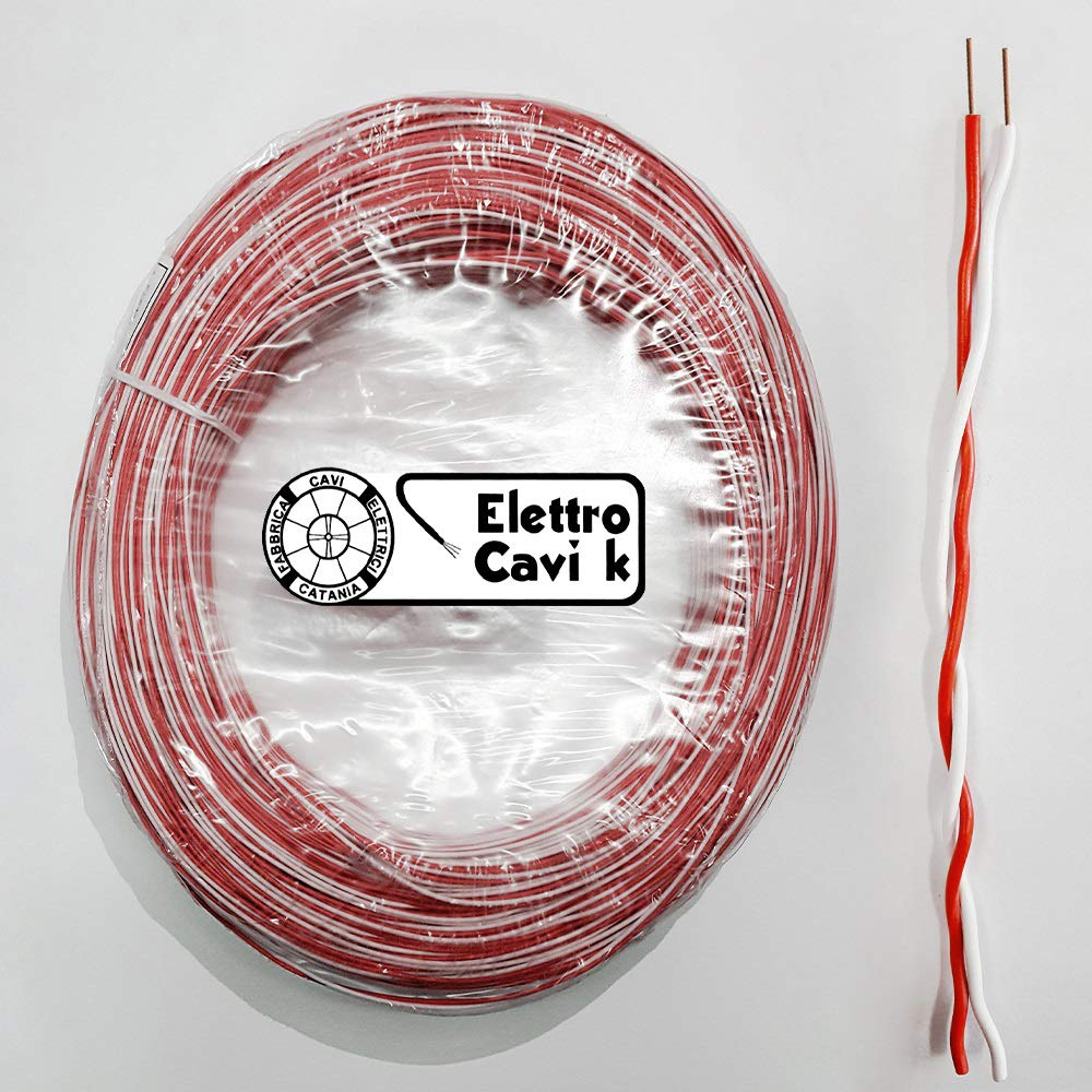 Cavo doppino telefonico 2x05mm in rame, professionale, bipolare 2 poli rosso bianco 250 metri