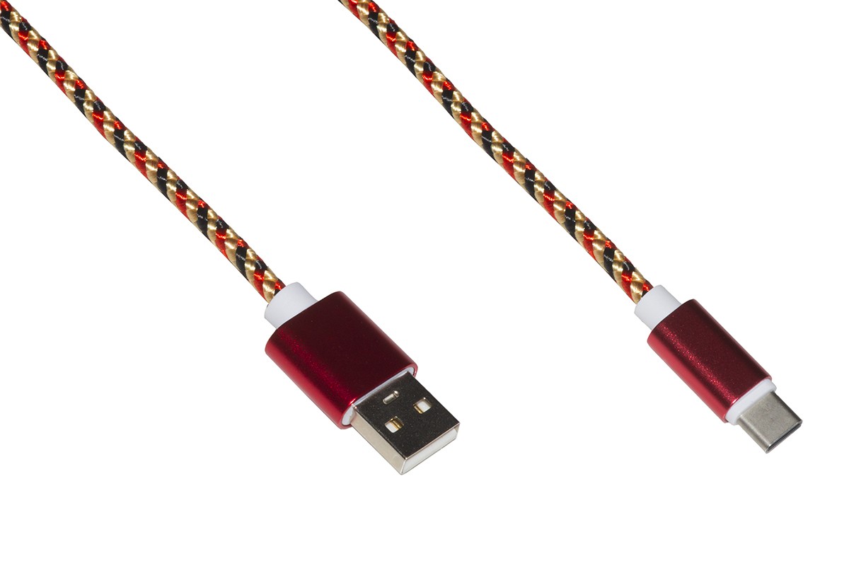 Cavo USB-C® per alimentazione e scambio dati di smartphone, niotebook e tablet. Anche per caricatori a ricarica rapida, assicura una ricarica veloce del dispositivo. Connettori con protezione antirottura nel punto di attacco, colore oro, si possono collegare e scollegare minimizzando il rischio di rottura. Standard USB 3.1 (Gen 1) fino a 5 Gbps Superspeed, 10 volte pi? veloce dello standard USB 2.0. Guaina in tela intrecciata con design molto ricercato e unico, non ? il solito cavo bianco o nero. Vorrete ricaricare lo smartphone anche quando non ce n&#39-? bisogno! Riconoscerete il vostro cavo tra tutti gli altri. Lunghezza mt 1 Connettore 1: USB-C® maschio Connettore 2: USB A Maschio