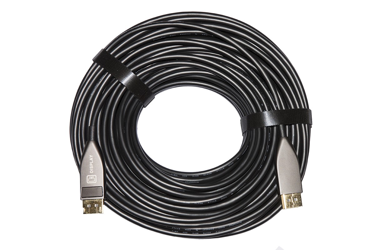 Cavo fibra ottica ibrido AOC (Active Optical Cable) per collegare tra loro due dispositivi Displayport trasmettendo audio e video a lunga distanza. Con contatti dorati che migliorano la trasmissione del segnale. Custodie dei connettori in zinco e alluminio per proteggere contro le interferenze.Per esempio si possono collegare un PC, notebook, decoder, lettore Blu ray ecc. a un video o HDTV. Nello specifico questo cavo supporta lo standard Displayport 1.4, Plug and Play, 3D e Hot Swap. Il segnale DP sul cavo classico di rame comincia a deteriorarsi dopo pochi metri. Mantenere ottime risoluzioni a grandi distanze ? costoso e complicato, si possono usare cavi amplificati, che solitamente non oltrepassano i 50 metri e necessitano di regolazioni, oppure si possono usare estensori tramite cavo di rete, che necessitano di alimentazione e cavi di rete su misura.L?alternativa ora sono questi cavi AOC (Active Optical Cable), coi quali si possono raggiungere grandi distanze mantenendo altissime risoluzioni e con nessuna alimentazione o regolazione da effettuare.? sufficiente collegare i due connettori alla HDTV e al dispositivo sorgente ed il collegamento ? pronto. Rappresenta quindi un?ottima soluzione per collegamenti home video, videogame, scuole, dimostrazioni, fiere.CARATTERISTICHE E VANTAGGINon c?? perdita di segnale e l?immagine viene trasmessa con grande chiarezza senza ritardi. I cavi AOC usano fibra ottica come conduttori, che sono pi? leggeri e sottili dei cavi di rame facilitando cos? la posa e la gestione del cavo. Inoltre, i cavi AOC non risentono di interferenze elettromagnetiche. La guaina conferisce comunque robustezza al cavo che pu? essere curvato e arrotolato.Questo cavo supporta 4Kp50/60/100/120 e 8Kp50/60- Supporta banda 48G- Bassi consumi di energia 250mW (max). – ? semplice da installare come un cavo, non necessita di impostazioni, alimentazione o regolazioni. Si pu? posizionare quindi lontano da prese di alimentazione.- Compatibile con lo standard DP 1.4- Supporta HDCP- Cavo: fibra ottica (50/125umMM)+7C Rame- Diametro nominale OD:4.8-5.0mm
