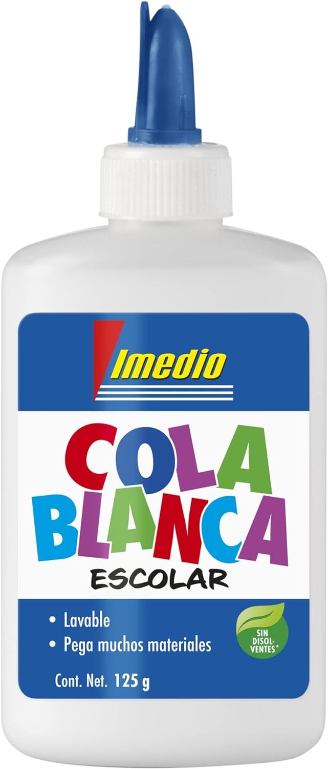 Colla Scuola Imedio White 125gr – Senza Solventi – Flacone Morbido Ideale per Bambini – Con Spatola Incorporata