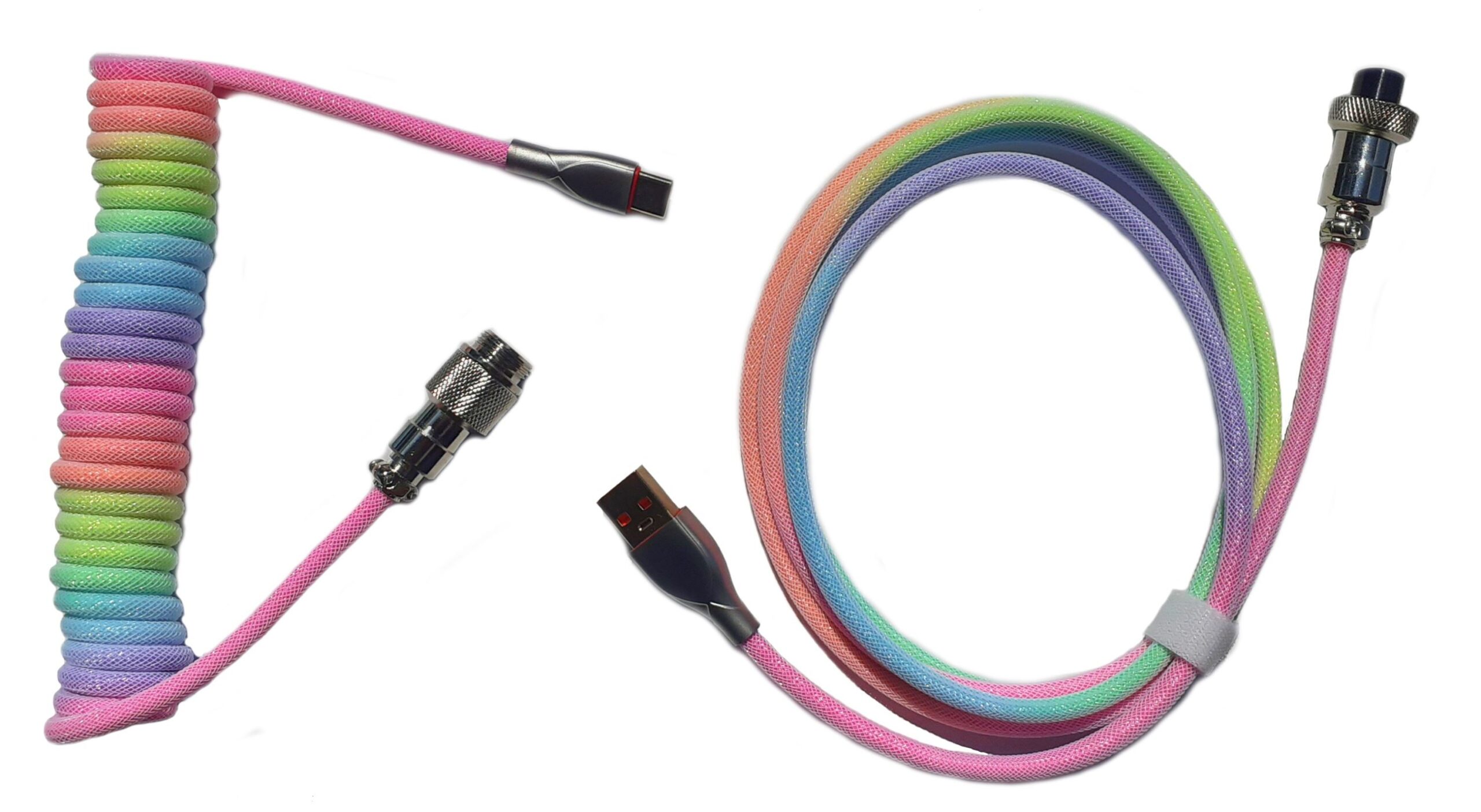 Coppia cavi Aviator USB di alta qualita&#39- per tastiera.Si possono collegare da soli, sono particolarmente utili nel caso di installazioni dove si colleano e scollegano i cavi frequentemente, diminuendo in questo modo l&#39-usura sui connettori USB.In due parti, una dritta e una arrotolata, con connettore stile aviazione e con interno in 4 core di rame assicura una comunicazione perfetta e una ricarica rapida (supporta ricarica rapida da 20w).Collegati tra loro, diventano un normale cavo USB-C – USB A.Disponibile in varie colorazioni anche abbinabili alle nuovissime tastiere Gasket Cortek.Aviator cable USB 2.0 da tipo A a tipo C 24AWG.Cavo 1: connettore USB A – Connettore Aviator 4 poli femminaCavo 1: connettore USB-C – Connettore Aviator 4 poli maschioFunctioni: Ricarica rapida da 20W e trasferimento dati, collegamento tastiere gaming con connettore USB-CVoltage 5V/2AConduttori in rame a 4 conduttoriLunghezza 1.80 (3.00 steso)
