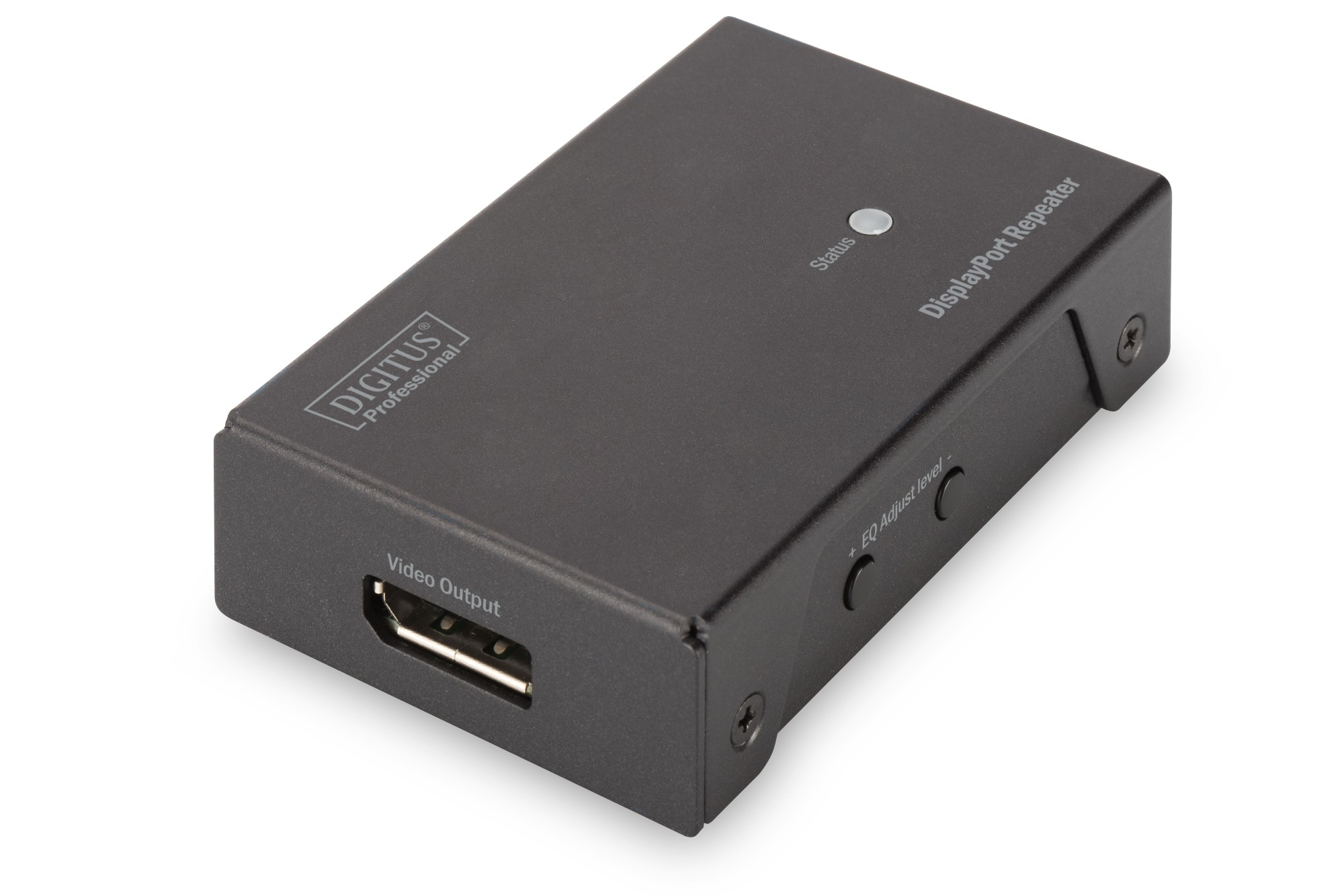 Digitus Ripetitore DisplayPort 4K, DisplayPort, 3840 x 2160 Pixel, Nero, 20 m, 12 x 80 x 50 mm, 155 g Digitus Ripetitore DisplayPort 4K. Tipo porta video: DisplayPort. Risoluzione massima: 3840 x 2160 Pixel, Colore del prodotto: Nero, Massima distanza di funzionamento: 20 m. Dimensioni (LxPxA): 12 x 80 x 50 mm, Peso: 155 g. Larghezza imballo: 139 mm, Profondità imballo: 164 mm, Peso dell’imballo: 425 g. Cavi inclusi: USB – Amplifica il segnale DisplayPort senza perdita di portata o qualità- Supporta risoluzioni 4K per una qualità eccellente delle immagini- Alloggiamento piccolo e compatto: trova posto ovunque senza ingombrare- Non è richiesto nessun alimentatore esternoVolete ampliare la portata del segnale DisplayPort senza perdita della qualità? L’amplificatore DisplayPort è la soluzione ideale. L’amplificatore espande il segnale DisplayPort fino a 20 metri in risoluzione Full HD e fino a 13 metri in risoluzione UHD 4K. Il supporto 4K garantisce una qualità dell’immagine brillante e incomparabile. È inoltre possibile utilizzare l’equalizzatore integrato per regolare manualmente la nitidezza e ottenere immagini di qualità ottimale. L’alloggiamento metallico compatto consente un’installazione senza ingombro e fornisce una schermatura eccellente.Connettività Quantità porte video 2 Tipo porta video DisplayPort Caratteristiche Risoluzione massima 3840 x 2160 Pixel Colore del prodotto Nero Full HD Sì Massima distanza di funzionamento 20 m Indicatori LED Sì Dimensioni e peso Dimensioni (LxPxA) 12 x 80 x 50 mm Peso 155 g Dati su imballaggio Larghezza imballo 139 mm Profondità imballo 164 mm Peso dell’imballo 425 g Volume del pacco 1413,35 cm³ Contenuto dell’imballo Manuale dell’utente Sì Cavi inclusi USB Dettagli tecnici Connettore 1 DisplayPort Connettore 2 DisplayPort Dati logistici Codice del Sistema Armonizzato (SA) 85176990 Paese di origine Taiwan UK Codice della tariffa commerciale 84718000
