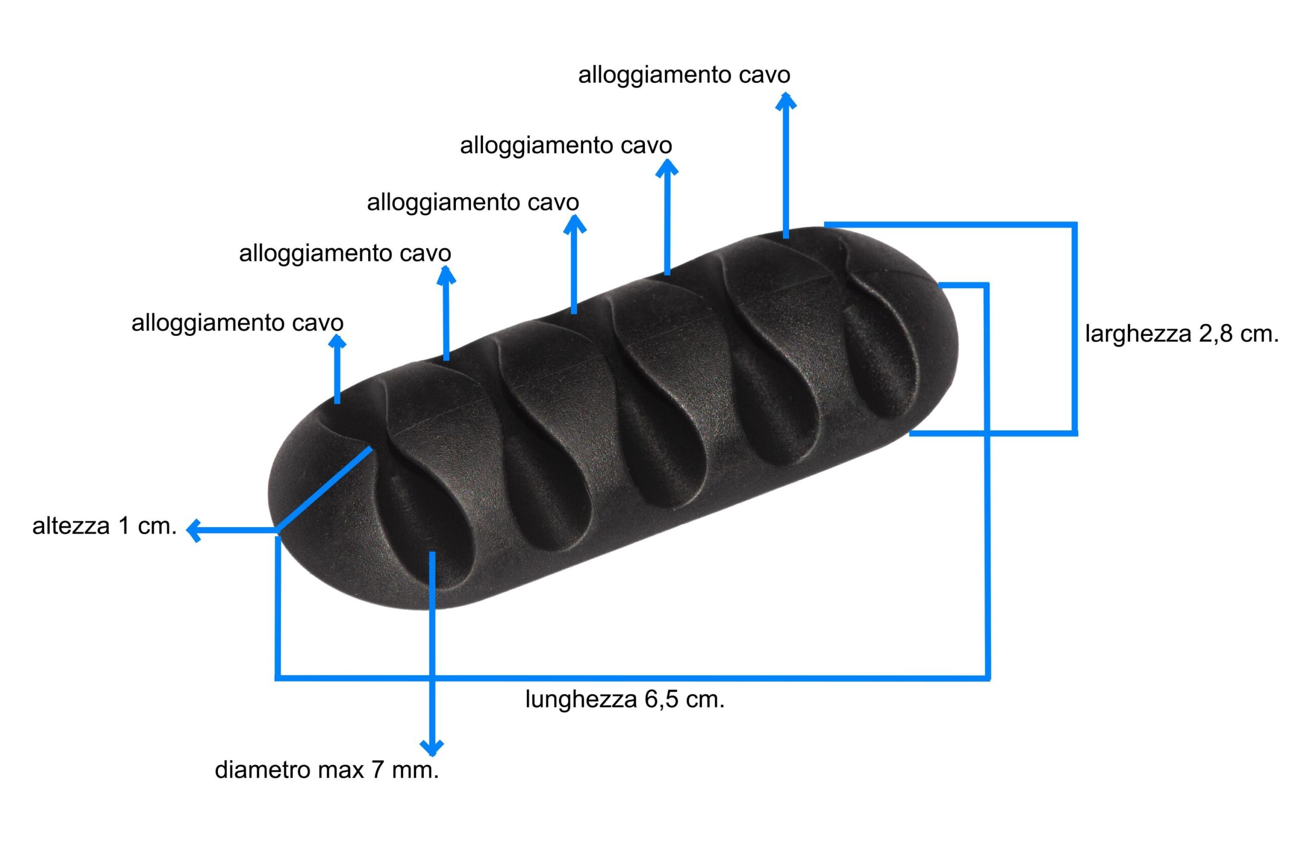 Supporti adesivi per gestire i cavi, per esempio i cavi di ricarica per lo smartphone, i cavi video della TV, o i cavi della stampanteSono piccoli e si possono installare in modo discreto in comodini, sotto i tavoli, sui mobiliRende pi? semplice prendere il cavo, e rendono pi? ordinato l'-ambienteIn materiale TPR flessibileKit da 16 pezzi:6 supporto singolo cavo diametro cm 2.5 altezza 2 cm4 supporti per 2 cavi diametro cm 2.5 altezza 2 cm2 supporti per 2 cavi cm 3.5×3.5 altezza 1 cm2 supporti per 3 cavi cm 3.5×3.5 altezza 1 cm2 supporti per 5 cavi cm 6.5×2.8, altezza 1 cmOgni supporto permette di alloggiare cavi fino a 7 mm di diametro.