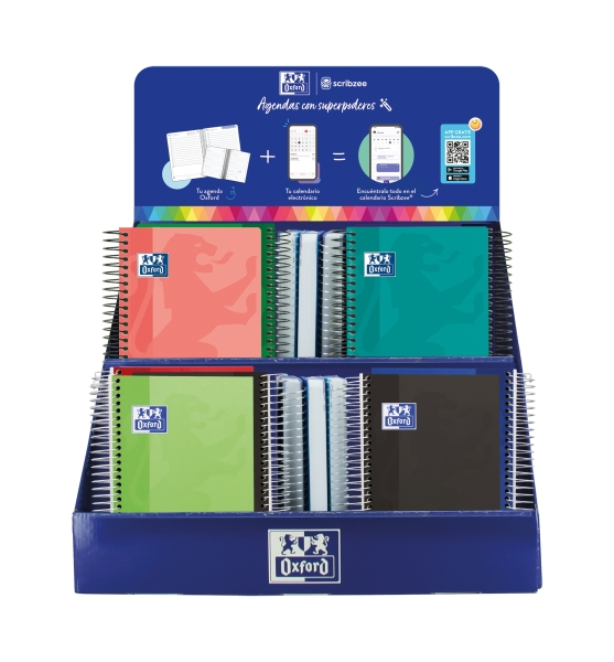 Oxford Basics – Espositore da 38 agende scolastiche 25/26 a spirale – Include agende con vista giornaliera e settimanale – Design assortiti