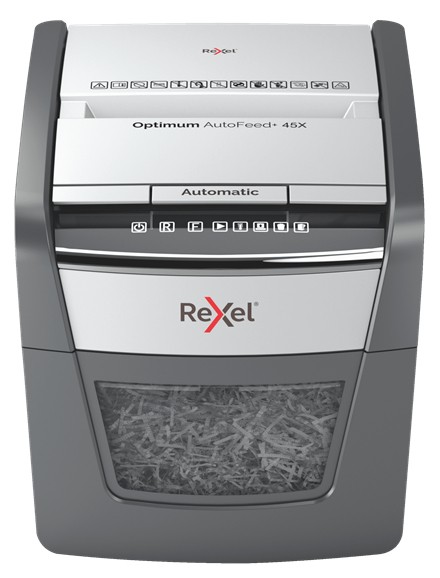 Rexel AutoFeed 45X distruggi documenti Triturazione incrociata 55 dB Nero, Argento