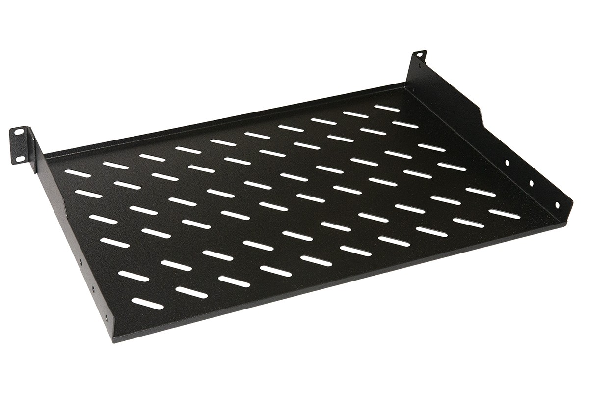 MENSOLE PER RACK. Ripiani in acciaio, per sostenere i componenti di rete degli armadi rack. La sua profondit� di 30 cm e l’altezza ridotta lo rendono adatto per la maggior parte degli armadi rack 19. Occupa poco spazio nell’armadio e consente di reggere dispositivi come switch, router, video, ecc. Con superficie traforata per agevolare la circolazione dell’aria all’interno dell’armadio e prevenire il surriscaldamento. La mensola si aggancia alla parte frontale dell’armadio. In acciaio, con attacchi frontali, universale per tutti gli armadi 19 dove la profondit� lo consente. Capacit� di carico 30 kg. Sono incluse anche le viti per l’installazione. Colore nero RAL9005
