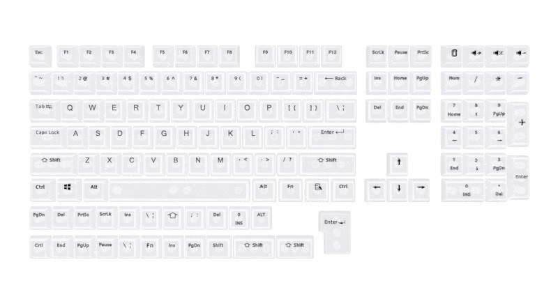 Set Di 132 Tasti Keycaps Transparent White Abs Mda