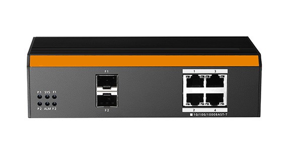Switch industriale Gigabit PoE con 4 porte Gigabit PoE e 2 porte Gigabit SFP. Questo switch si pu? usare come iniettore PSE con un massimo di 46 Watt per porta, per dispositivi compatibili IEEE802.3af /at in punti difficilmente raggiungibili da alimentazione diretta. Alloggiamento in alluminio corrugato protezione IP40, per installazione su guide Rail, ? fatto per operare in ambienti estremi, con temperature da -40° a 75°. Supporta una serie di funzioni: RUN-Ring (self-healing