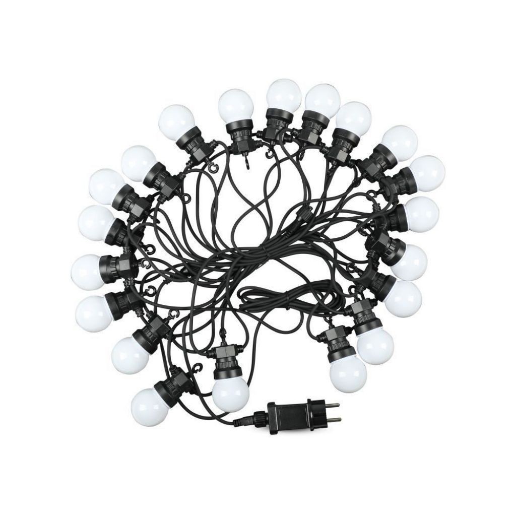 V-TAC Catenaria 10m con 20 Lampadine mini Globo LED 10W Colore Bianco con Schuko e Trasformatore 6000K IP44