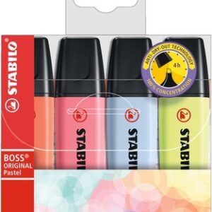 STABILO Evidenziatore – BOSS ORIGINAL Pastel – Astuccio da 4 – Rosso Corallo, Fior di Ciliegio, Azzurro Nuvola, Lime